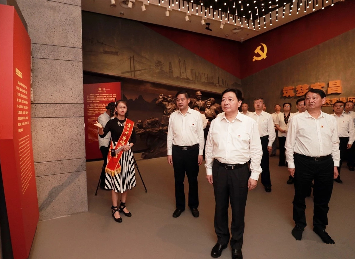 9月19日,湖北省委常委、宜昌市委書記周霽帶領(lǐng)市委常委,市人大常委會、市政府、市政協(xié)領(lǐng)導(dǎo)同志,市法院、市檢察院主要負(fù)責(zé)同志走進(jìn)河南藝樹文化創(chuàng)意有限公司設(shè)計布展的宜昌黨史館,開展革命傳統(tǒng)教育,緬懷革命先烈,重溫入黨誓詞,牢記初心使命,傳承紅色基因。