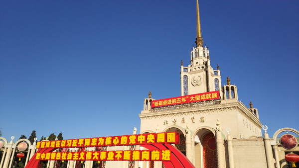 在黨的十九大召開(kāi)之際,北京展覽館承辦了“砥礪奮進(jìn)的五年”大型成就展。本次展覽經(jīng)黨中央批準(zhǔn),由中共中央宣傳部、國(guó)家發(fā)展和改革委員會(huì)、中央軍委政治工作部、中共北京市委聯(lián)合主辦。