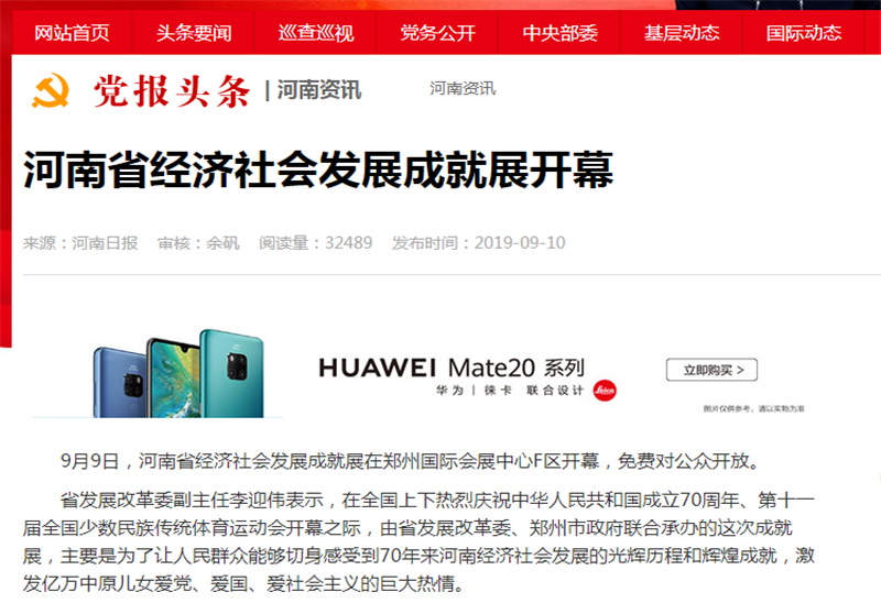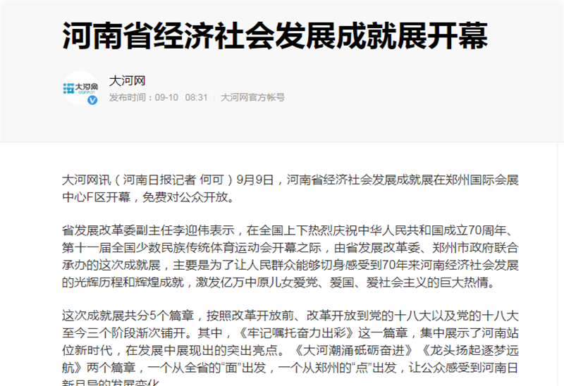 國(guó)家、省級(jí)主流新聞媒體關(guān)注報(bào)道河南省經(jīng)濟(jì)社會(huì)發(fā)展成就大型展覽