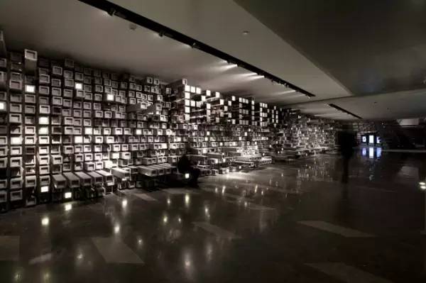 走廊的墻上用不同的長(zhǎng)方形組成凹凸有致的感覺(jué)