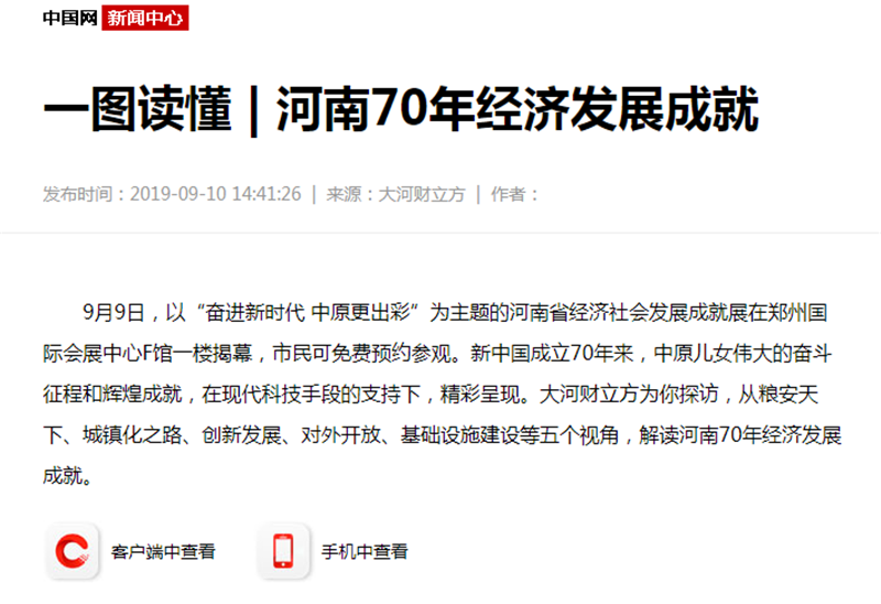 國家、省級主流新聞媒體關(guān)注報道河南省經(jīng)濟社會發(fā)展成就大型展覽